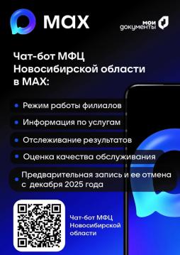 Для удобства заявителей в МФЦ Новосибирской области функционируют различные цифровые сервисы. Среди них — чат-бот МФЦ Новосибирской области на отечественной площадке МАХ.